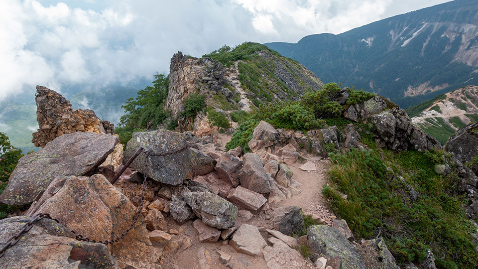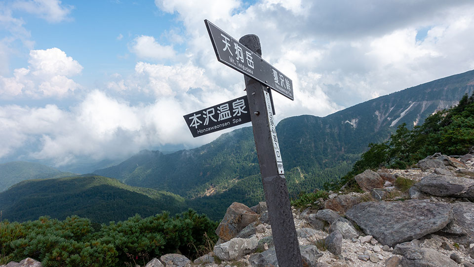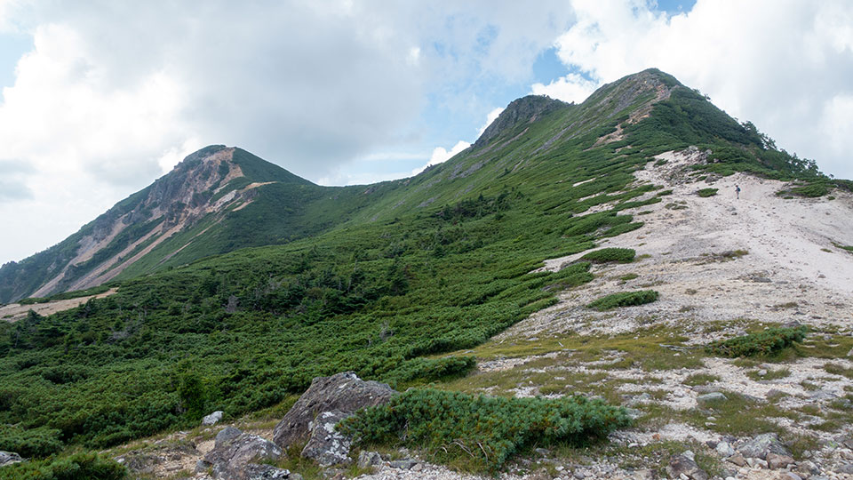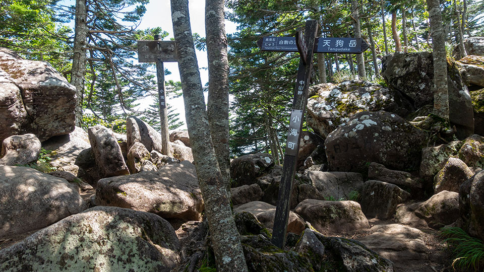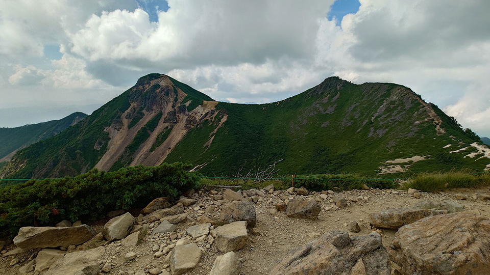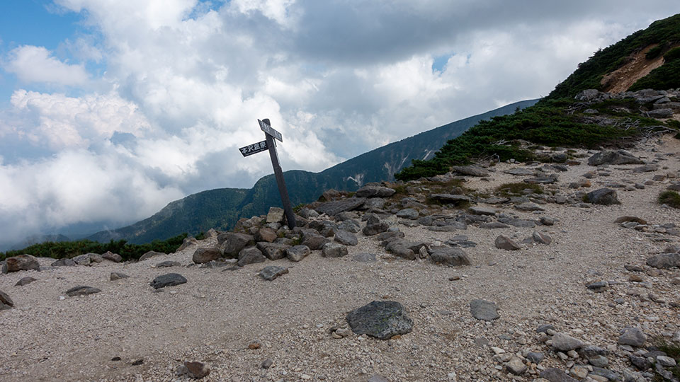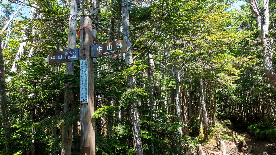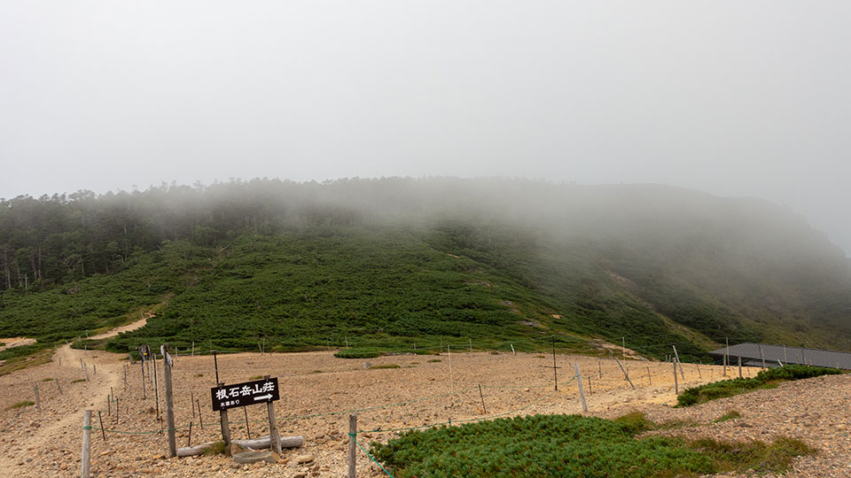 丁度根石岳と箕冠山の鞍部にあるんだよね。