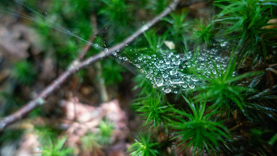 蜘蛛の巣に付着した水滴が何とも美しい(*´ω`*)