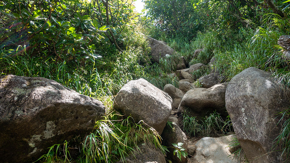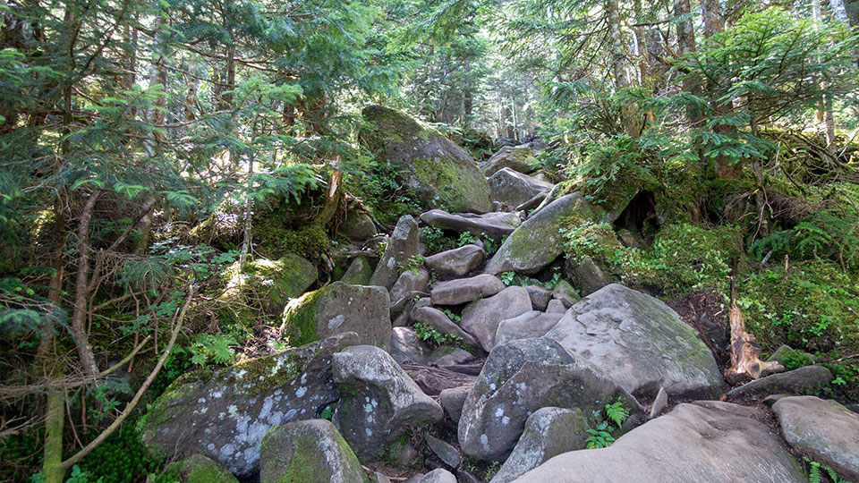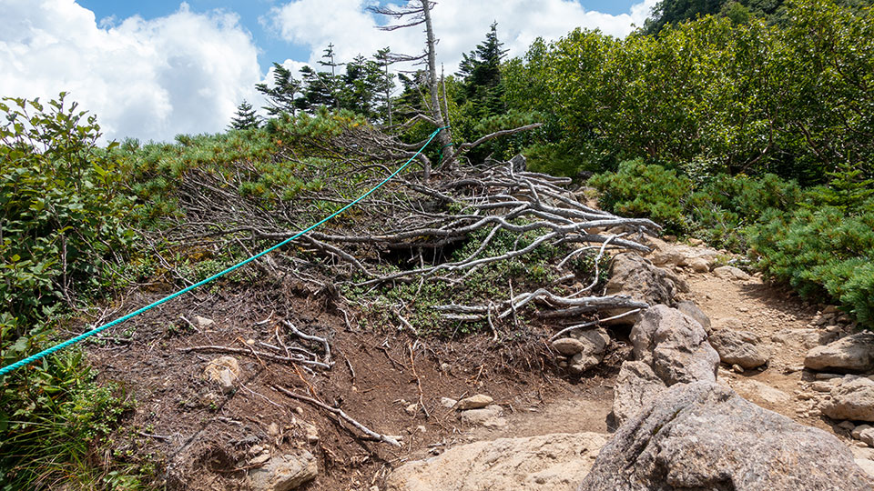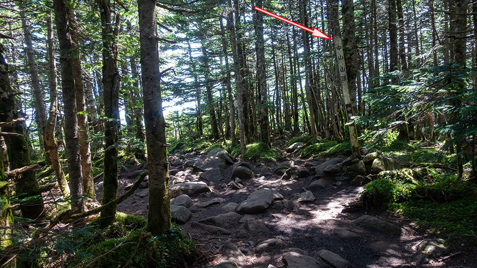 確かに、登山道脇の樹林帯に紛れて配置されており、ぱっと見で気が付きにくいと思う。