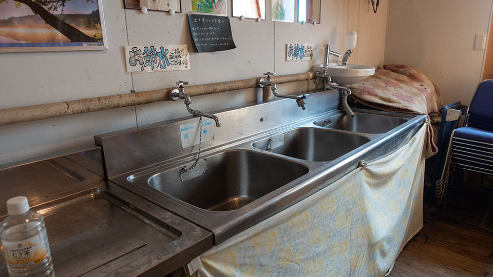 トイレの他、乾燥コーナーや自炊コーナー、水場がまとまってました。