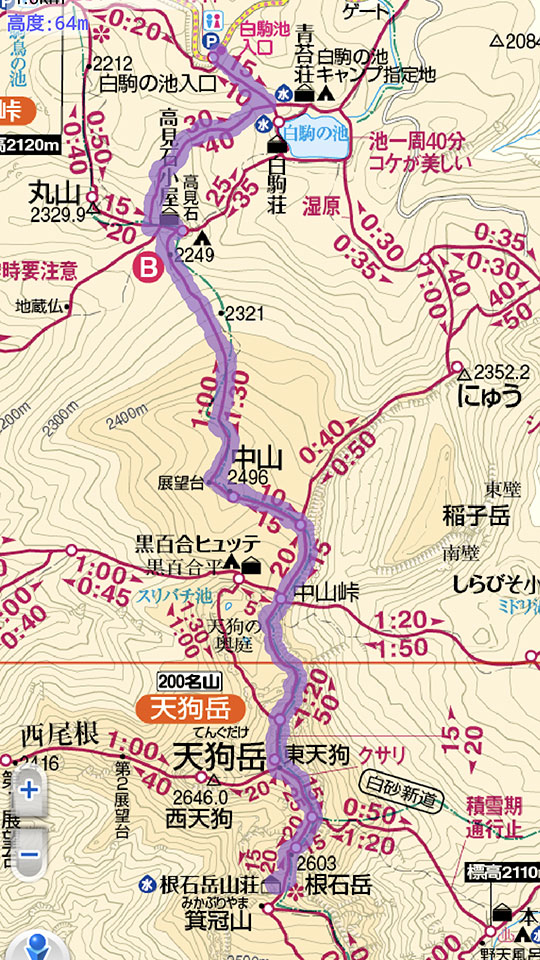 今回は白駒の池を起点に根石岳(ねいしだけ)迄歩く計画を立ててみました。