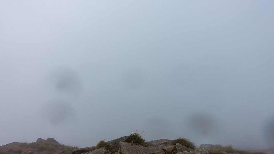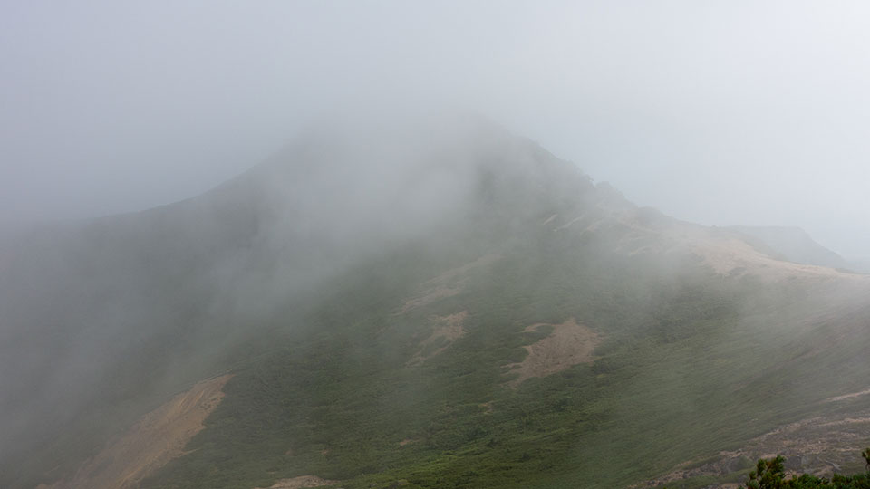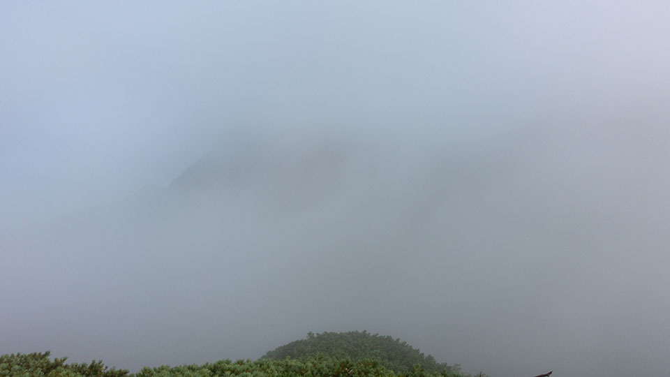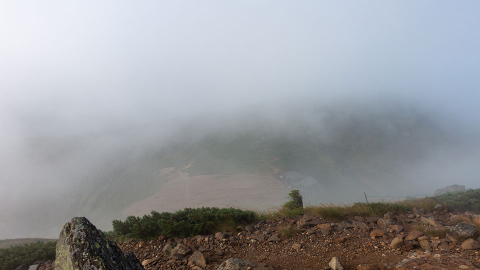 この霧の中を降りるんかぁ。。。