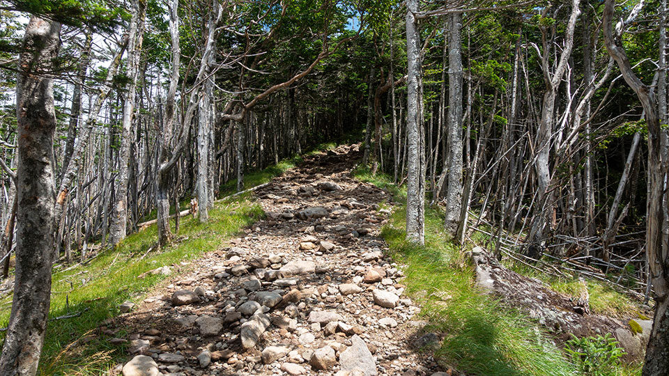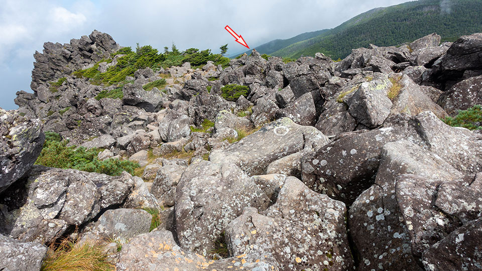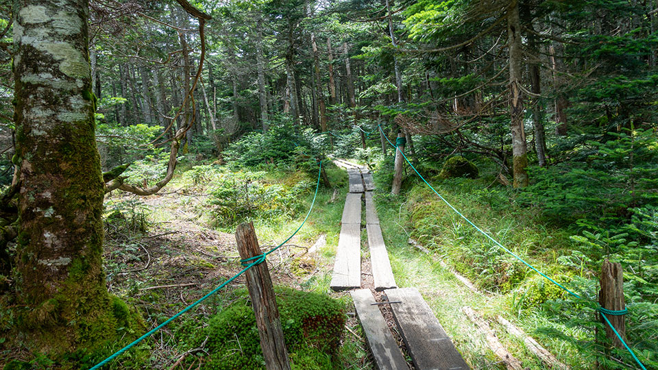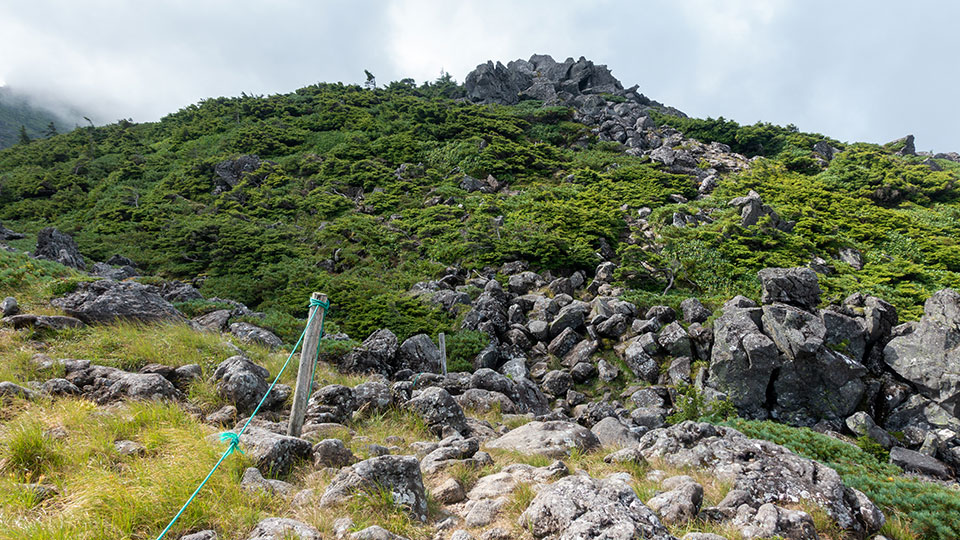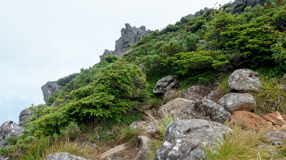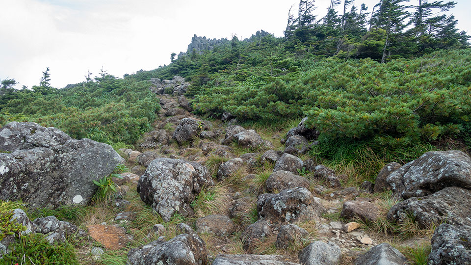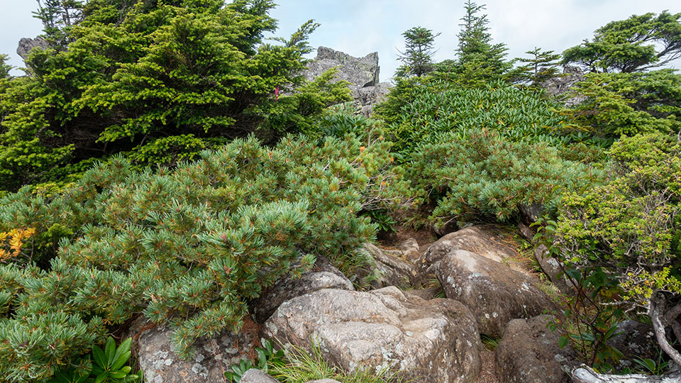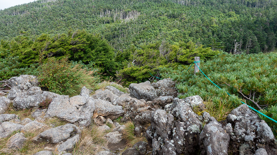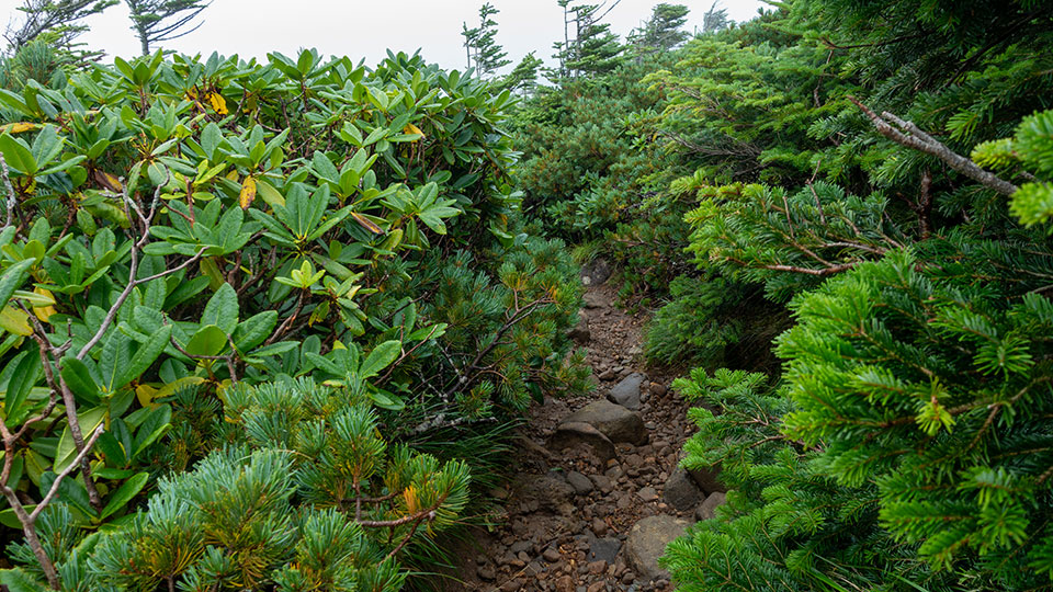 ハイマツ帯を歩く。