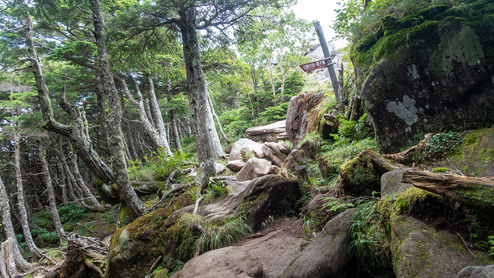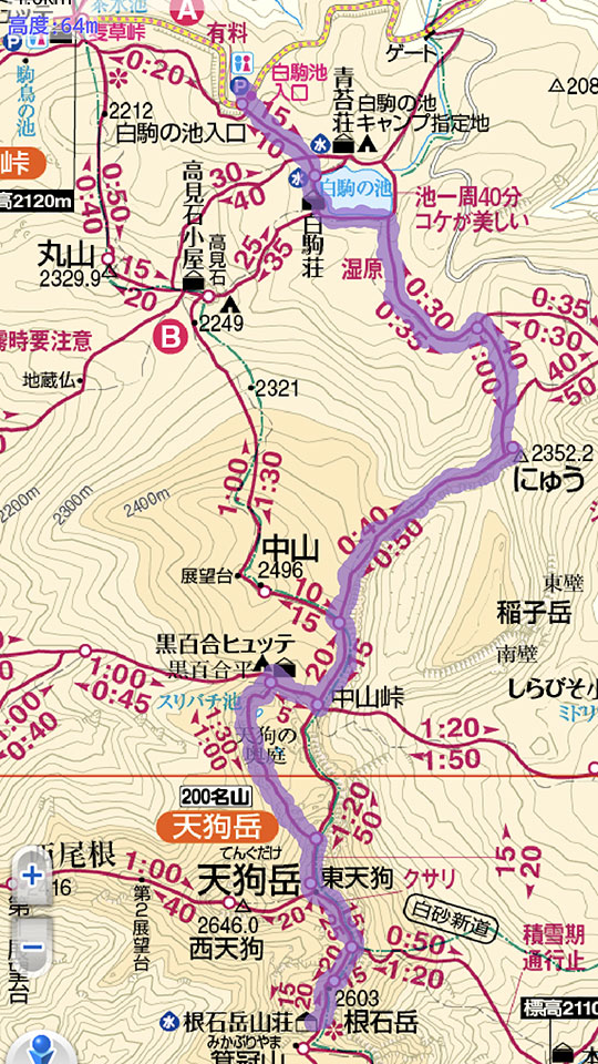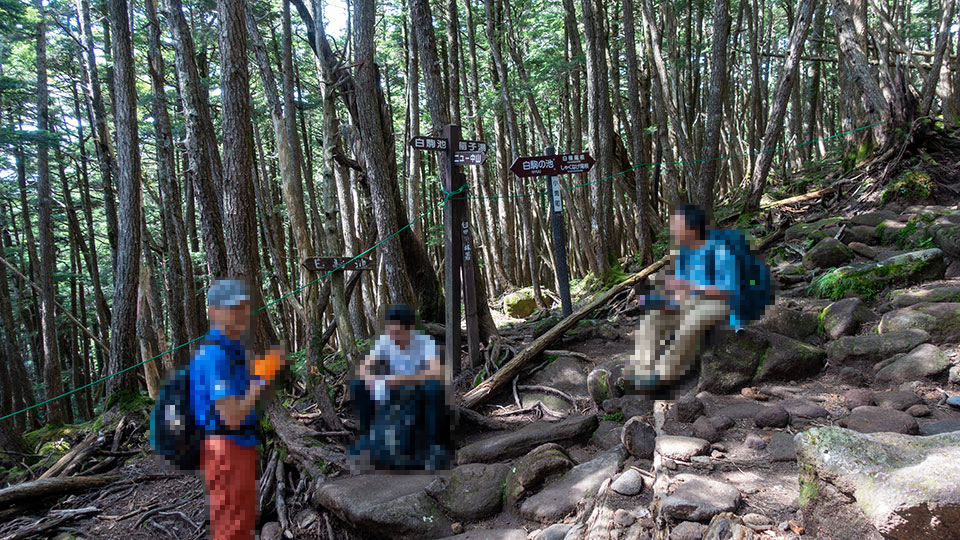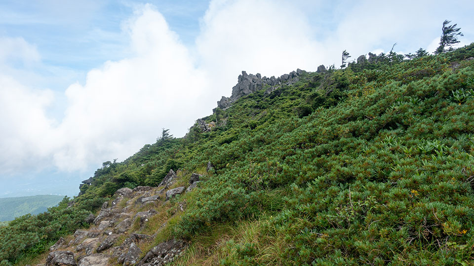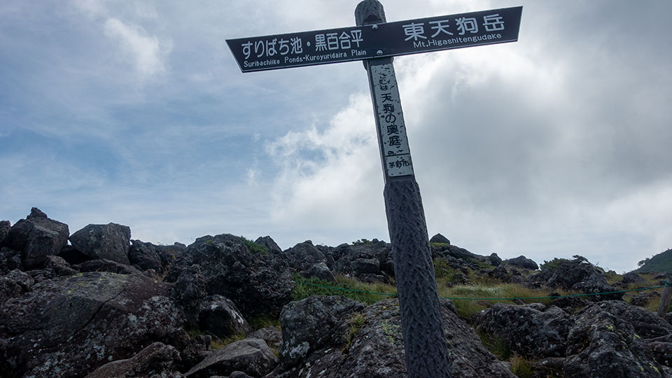 この日は折り返して東天狗岳から黒百合平へ降り、にゅうを経由して白駒の池へ戻ります。