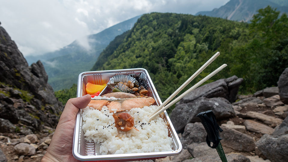 根石岳山荘で購入しておいた弁当を頂きます。