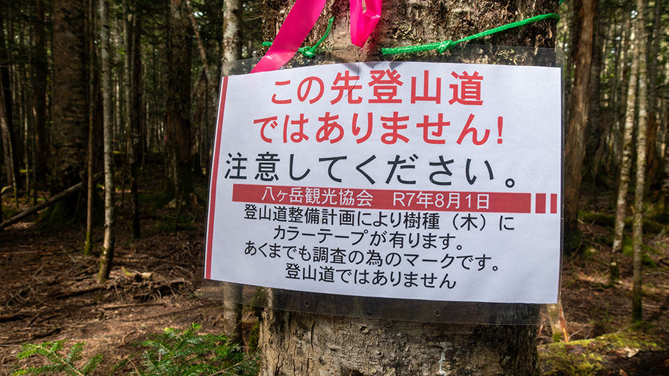 にゅう・白駒の池分岐の道標だ!