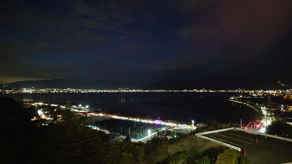 諏訪湖の夜景をしばし眺める(*´ω`*)