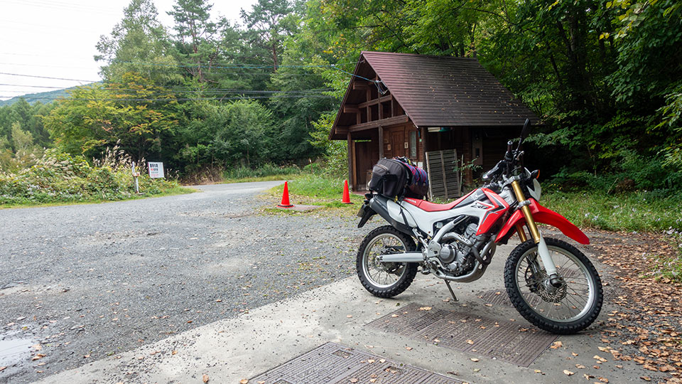 県道84号線はこの先も続いてるのだけれど、マイカー規制がかかっていて一般車両はここまで。