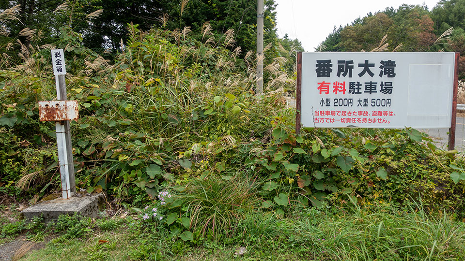 やって来たのはこちら、番所大滝(ばんどころおおたき)駐車場だ。