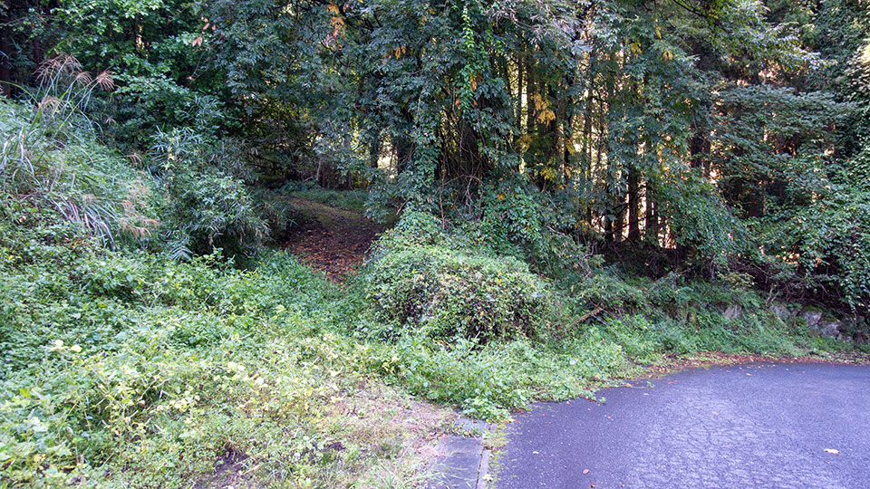 道標は無く薮っぽい入口だけれど、これひょっとして散策路か何かかなぁ?
