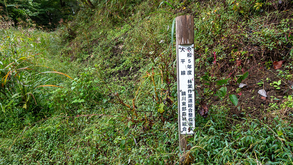 ここは左へ折れるのが林道大平線で、直進が林道草喰八丁河原(くさばみはっちょうがわら)線です。