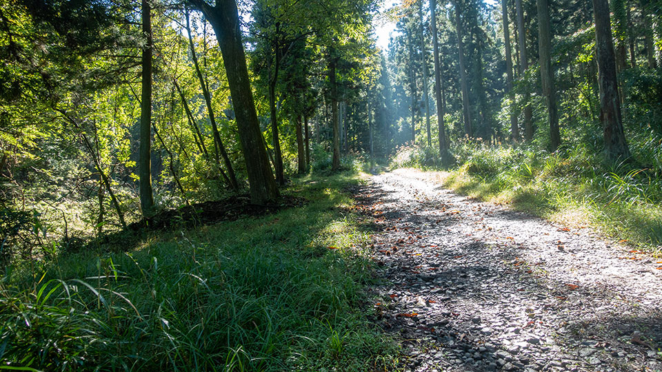 やがて尾根に出ると、路面には落ち葉や木の枝が目立つ様になって来た。