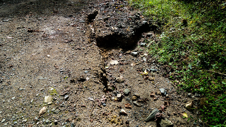 小規模ながら洗堀や落石も散見されて、その上勾配もそこそこあるので慎重を要しました。