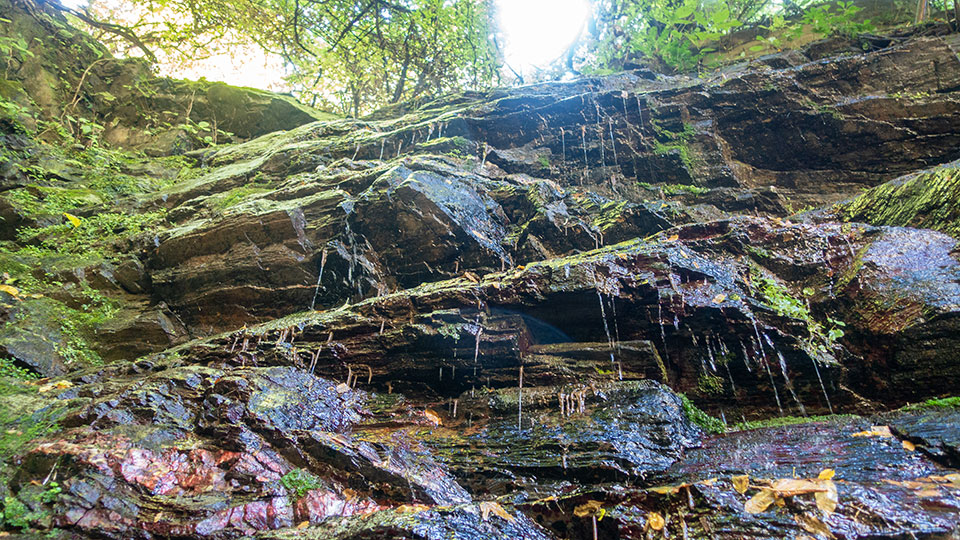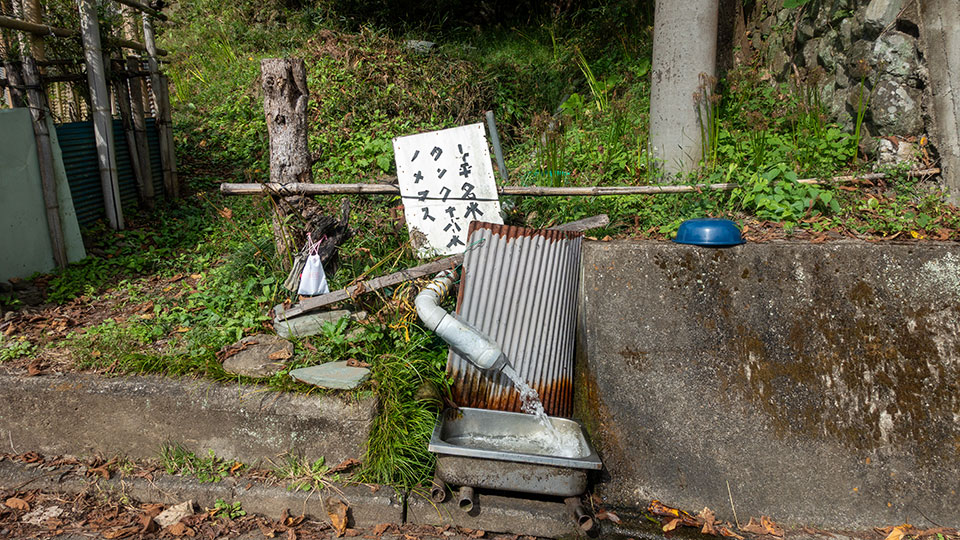 先程の奈良山分岐から間も無く、県道沿いに湧水ポイントがあります。
