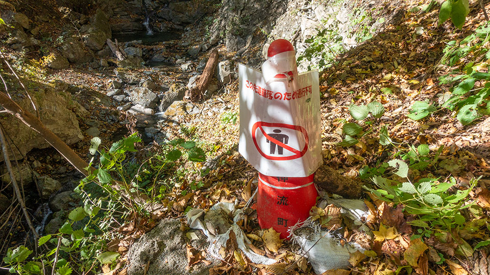 一応、ここで滑落しても、沢を渡渉して対岸の岩場をよじ登れば復帰は出来そうな気配はある。