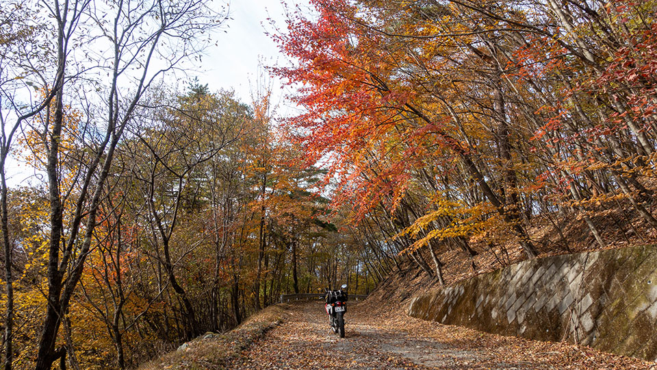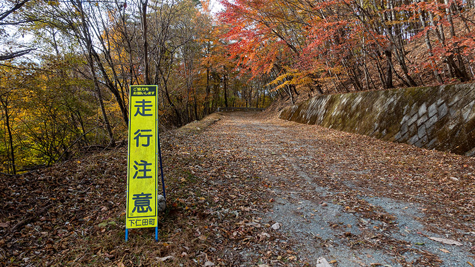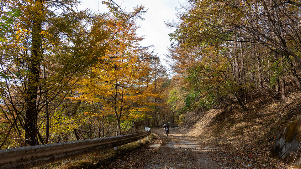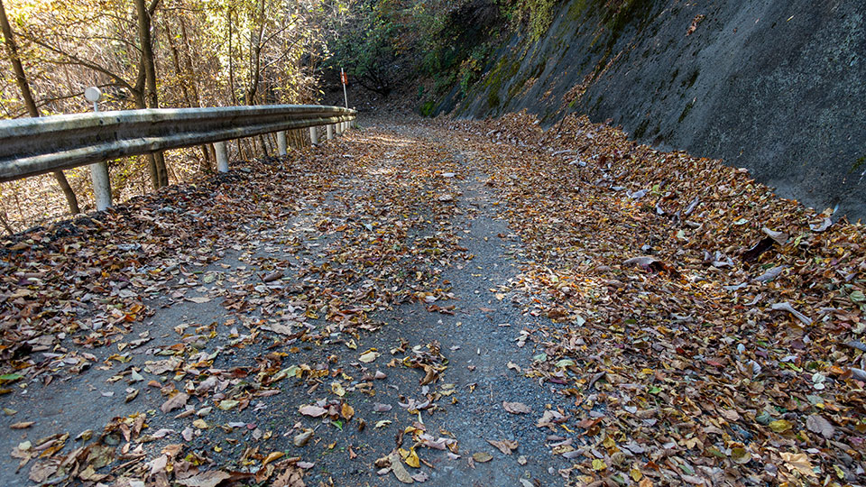 場所によっては落ち葉で路面が埋め尽くされた箇所もあった。