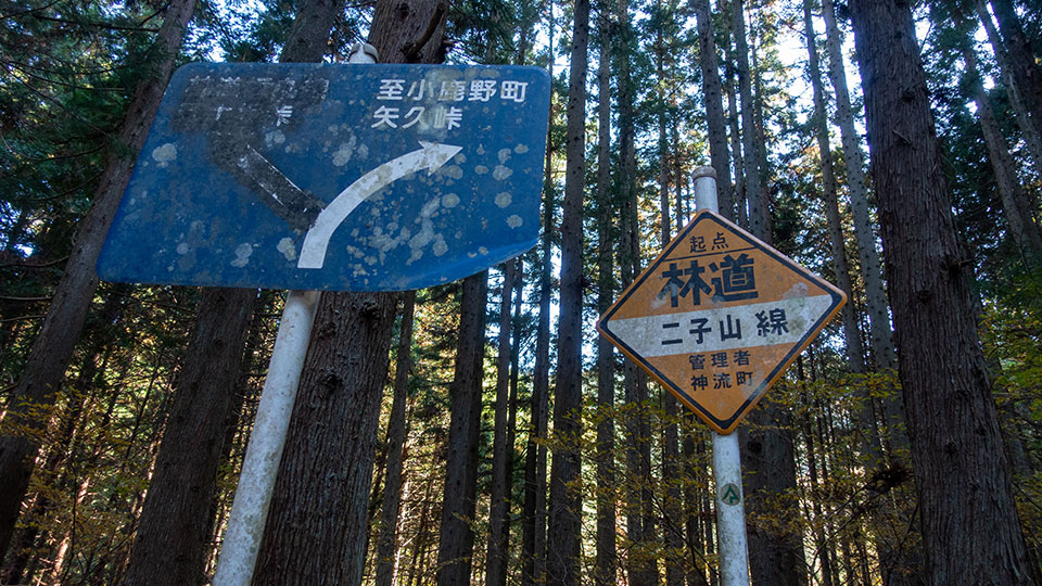 下仁田側の林道終点標識。