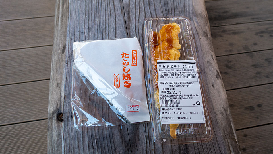 芦ヶ久保で買っておいた、たらし焼きとみそポテトを頂きます(´ー`)