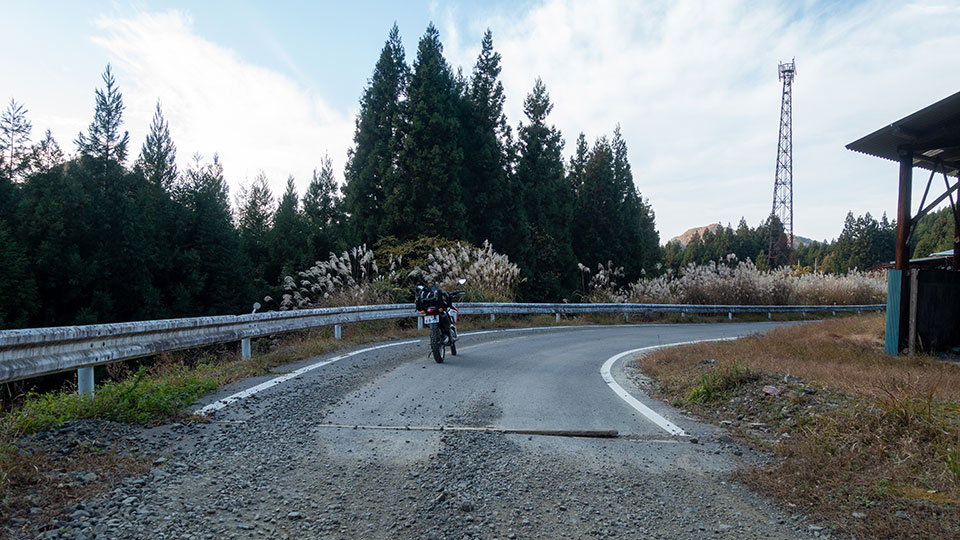 ナノレカワさんの去年の行程レポートでは、路面洗堀を示すコーンと警告文が置かれていたんだよね。