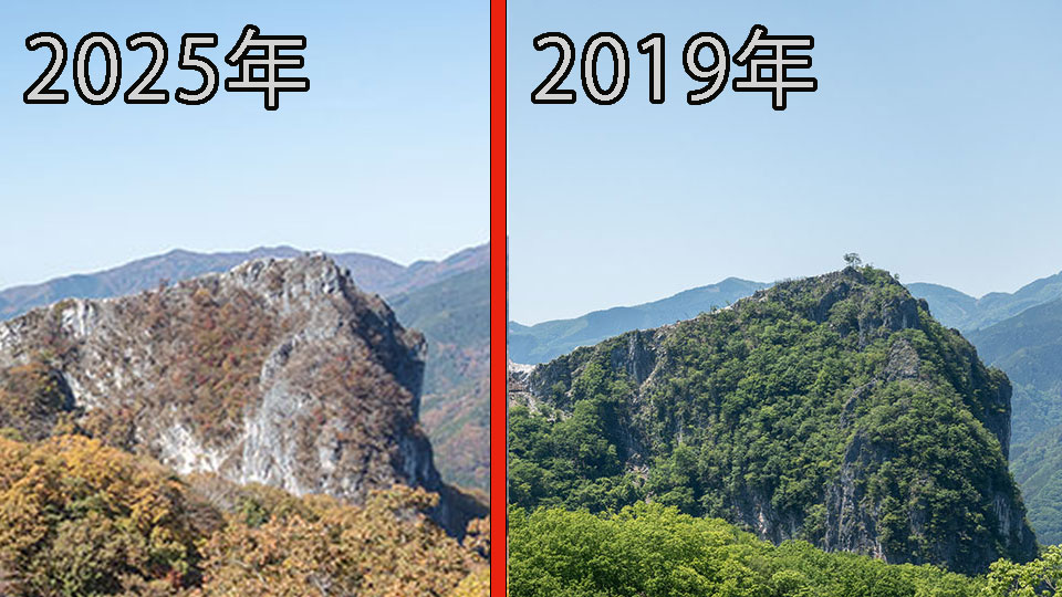 ほぼ同じ場所で2019年と2025年で撮影した画像を並べるとこんな感じ。